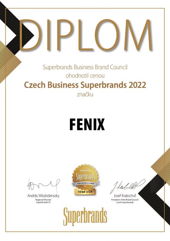 Obchodní značka FENIX obhájila ocenění Czech Business Superbrands 2022.